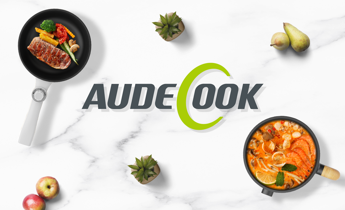 Audecook 2L Electric Hot Pot with 8-Inch Non-Stick Pan - Beige