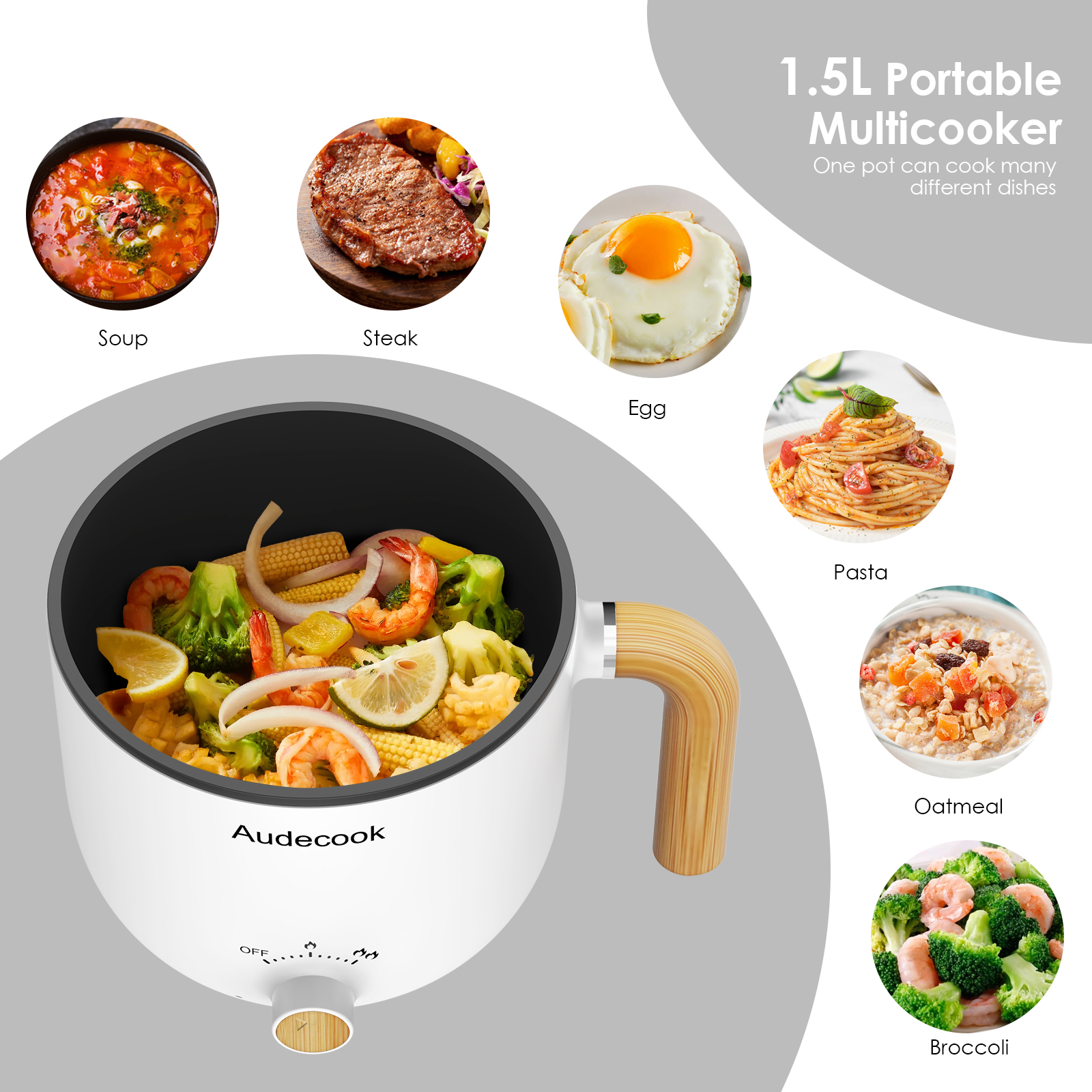 This Audecook 1.5L Mini Pot is compact in size for easy storage, saves space in the kitchen, replaces a variety of pots, ideal for singles, couples and small families! Easy to carry, can be used in small kitchens, offices, college dormitories, apartments, hotels, travel, camping and RVs. With its elegant look and unique design, this electric cooker is also a perfect gift for family and friends who love to cook.