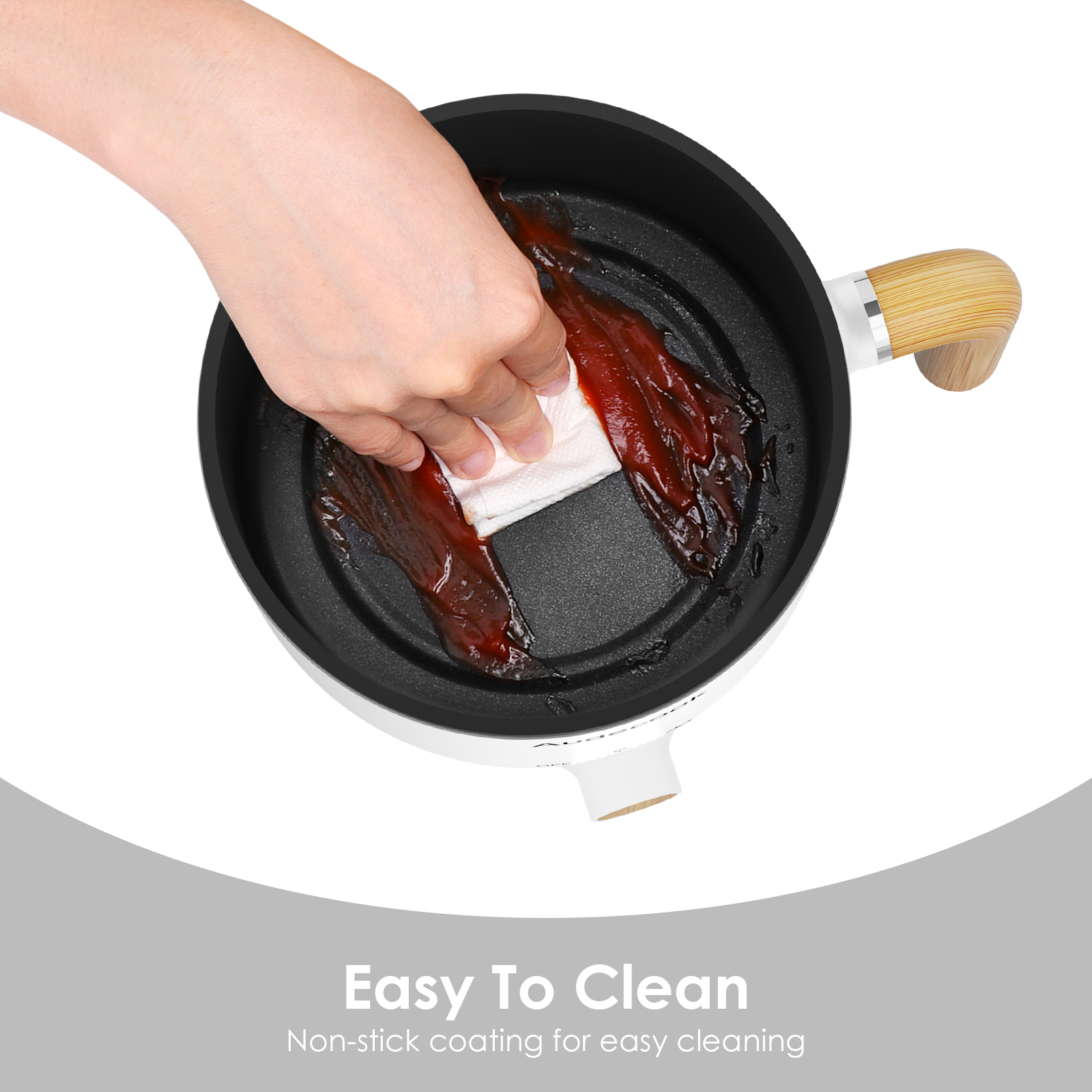 The Audecook electric cooker uses 360° round embedded heating element technology to heat food evenly and finish heating faster than ordinary pots. This mini electric cooker has a safety protection function that automatically cuts off the power when there is a dry burn or overheating condition to ensure the safety of the cookware.