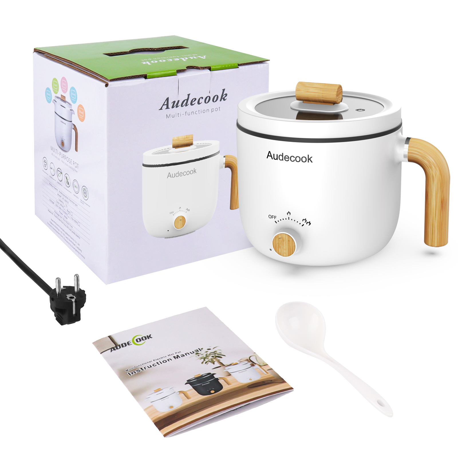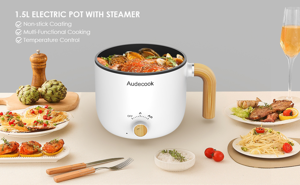 Audecook 1.5L Mini Electric Hot Pot: Portable Rapid Noodles Cooker - without steamer