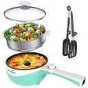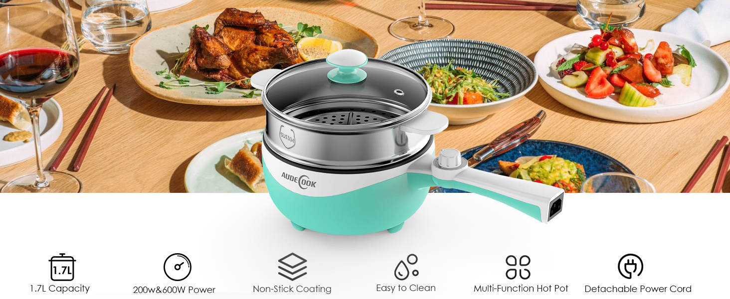 Audecook 1.7L Portable Electric Skillet – Nonstick Mini Hot Pot - Green · With Steamer