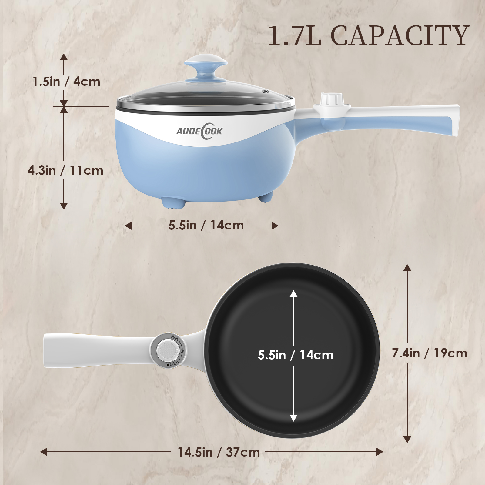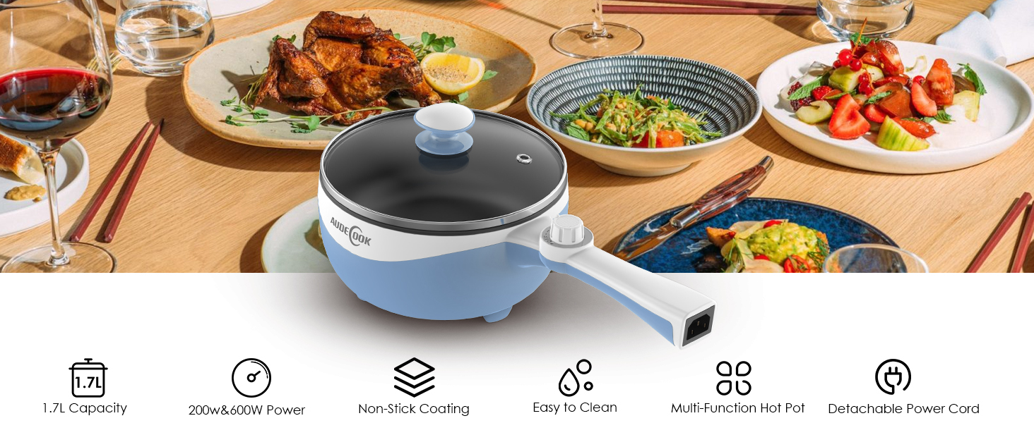 Audecook 1.7L Portable Electric Skillet – Nonstick Mini Hot Pot - Blue