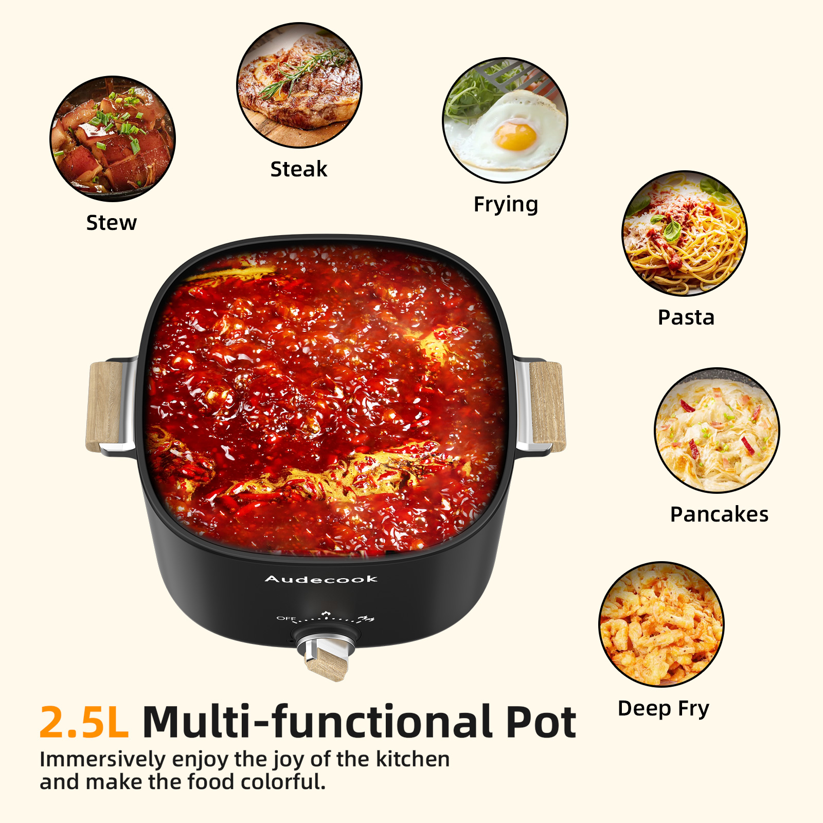Audecook 2.5L Portable Electric Hot Pot: Versatile Multicooker for Travel - Black